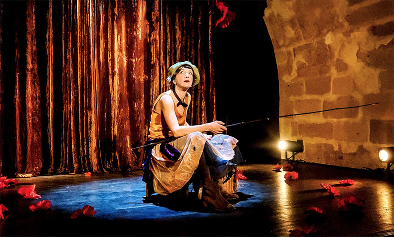 Marie Thomas, mise en scène par Michel Bruzat, arlequine funambule, réincarne avec justesse ce clochard poète, ce jongleur de mots, humaniste, qui nous parle de l’état du monde, de l’homme, de son paradis perdu et de ces conquêtes de chimérique.